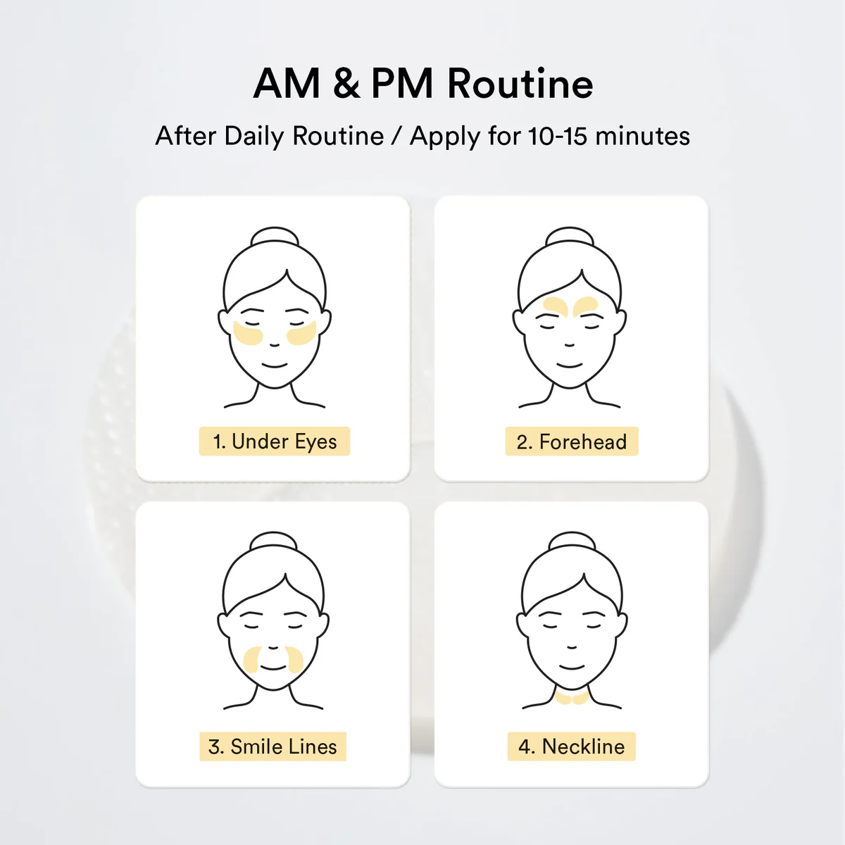 2. Using the provided spoon, place patches under the eyes